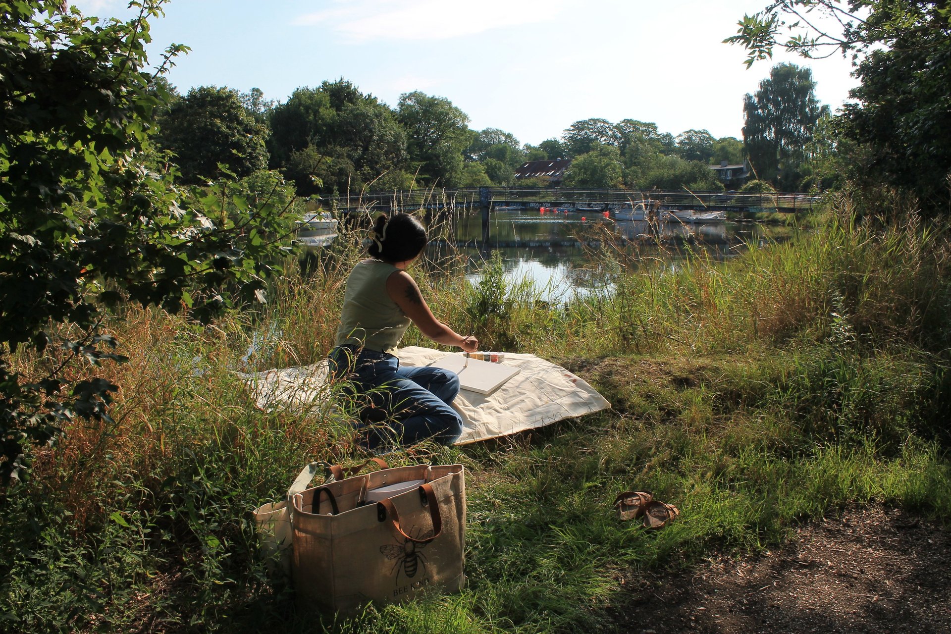 she graduated from Pratt Institute, NY with a bachelors degree in Interior Design and finds painting as a fulfilling way to express her love of color and texture. She continues to practice architecture and is currently taking a masters at the Royal Danish Academy in addition to painting in her home studio in Christianshavn.