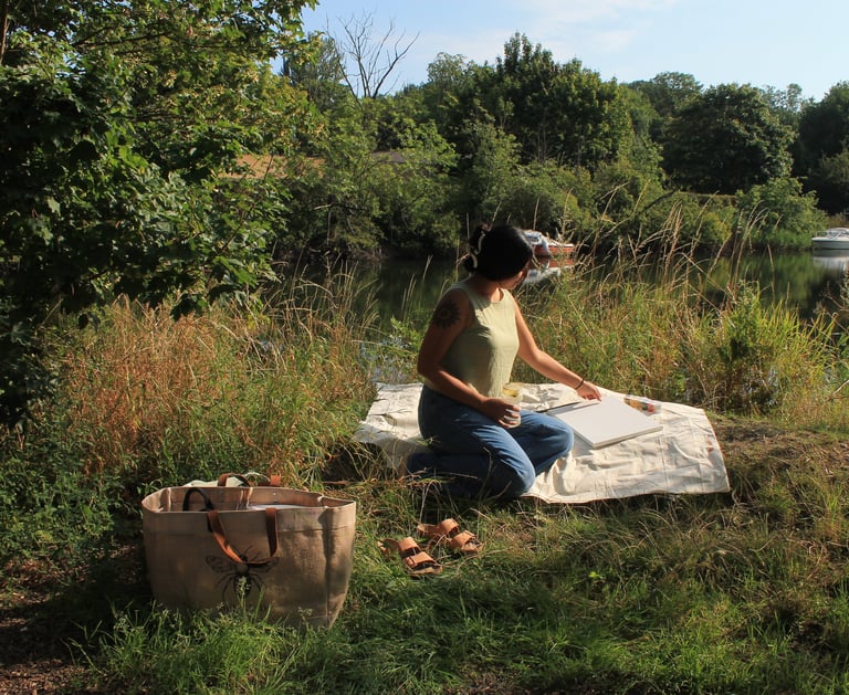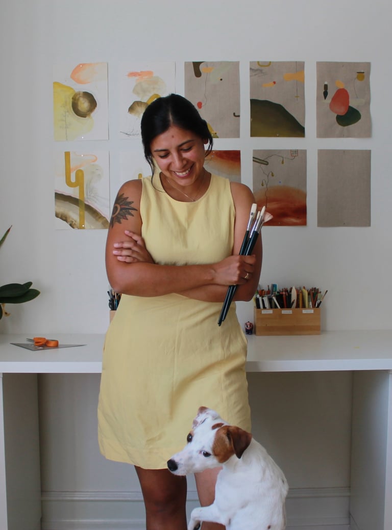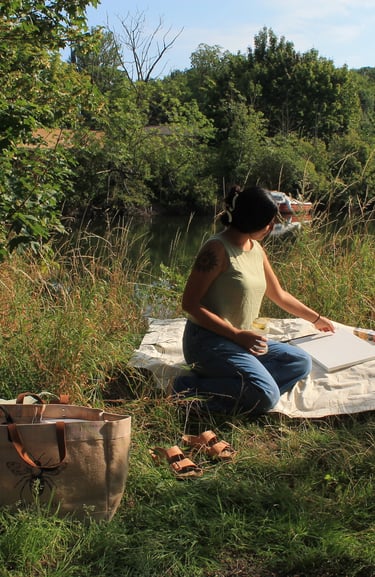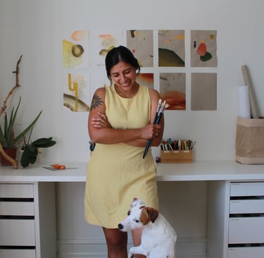 as a self-taught artist is rooted in the belief that a playful life immersed in nature allows the spirit to express its truest self. Her artwork invites the viewer to observe color and shape through the child-like wonder which we often lack in our everyday lives. It asks the viewer to slow down, see the mundane with fresh eyes and reconnect with the pulse of life that runs through all living beings.